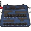 Quality materials used to make the Socket Roll Pro. Giving 4 stars due to mil spec elastic hem on 1/2″ socket holes was not sewn making it more difficult to load sockets. Will live with it until it becomes a major annoyance. Found that 1/4″ and 3/8″ openings will hold 2 sockets (have 5mm and 5.5mm) in the same opening. They have remained in place through some jostling around in the back of my Outback.